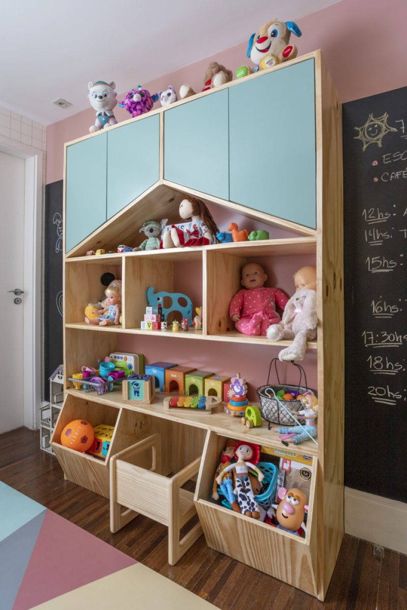Na composição, não podem faltar móveis para expor e guardar brinquedos, além de baús, porta-livros e tapetes de borracha, que deixam o chão mais confortável e seguro para os momentos de brincar. Para as crianças a partir de 5 anos, um cantinho de estudos é indispensável. Escrivaninha e cadeira na altura adequada, bem como acessórios como porta-lápis e os livros favoritos deixarão o estudante mirim mais animado para fazer o dever de casa. "Se o quarto for mais amplo, uma boa dica é fazer uma separação de espaços para que os brinquedos não tirem a atenção dos estudos", sugere Roberta.