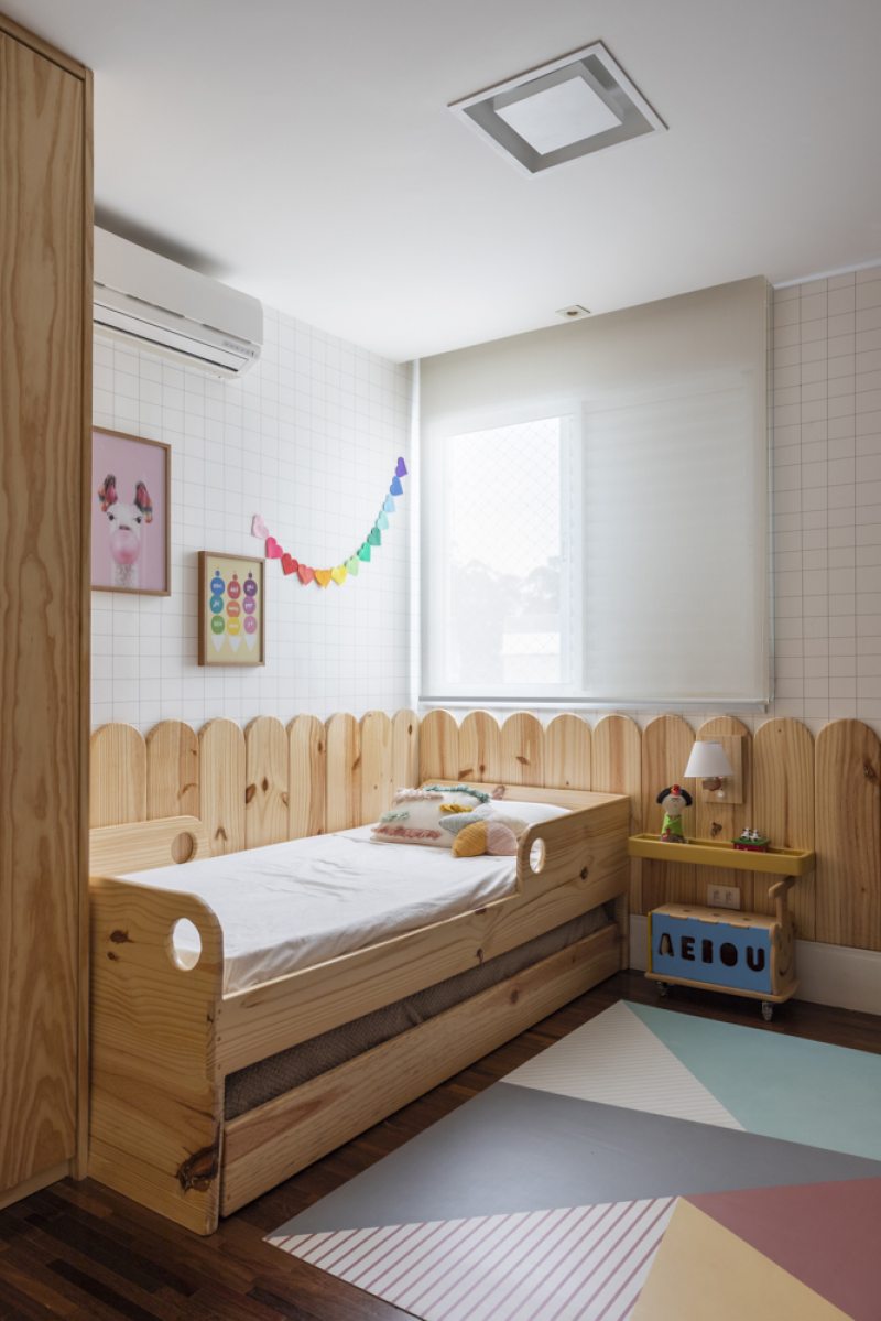"Por conta da sua altura mais rente ao chão, a cama montessoriana é ótima para as crianças menores e a bicama pode ser boa para quartos divididos ou aquele dia de receber o amiguinho que vai passar a noite na sua casa ou até a babá", sugere a arquiteta.