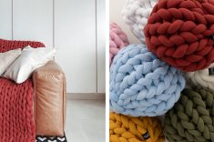 2. Para ver filmes quentinhos, a manta Maxi Tricot está disponível em diversos tamanhos. Tricotada com fios de algodão que, combinados com elastano e poliamida, compõem um tubo elástico com enchimento de fibra siliconada de poliéster. Da Magma, a venda na Thirty Seven Trend