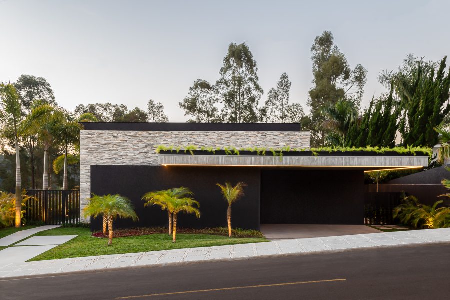 Localizada em um condomínio fechado na cidade de Ponta Grossa, no interior do Paraná, a residência idealizada pela equipe da 42 Graus Arquitetura desafia convenções. Logo na fachada principal a personalidade da arquitetura fica evidente graças às cores saturadas e linhas retas, características do estilo minimalista.