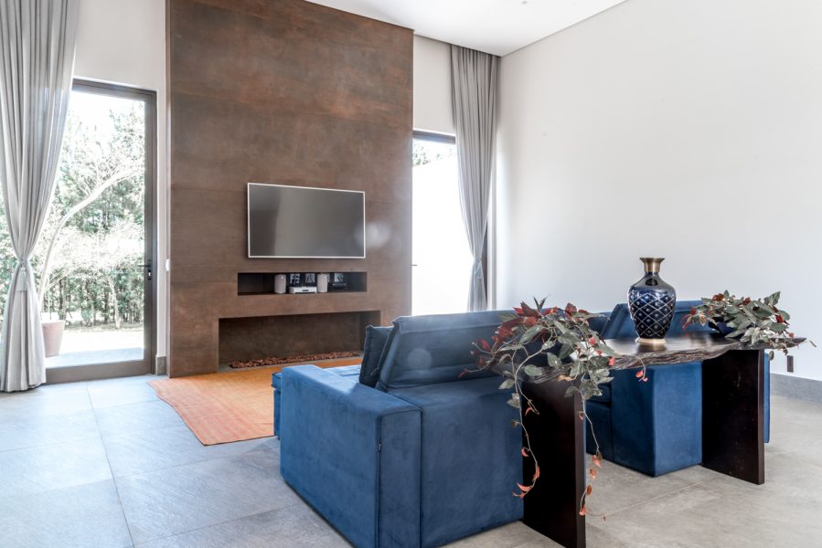 A arquiteta Isabella Nalon explica que a lareira ecológica pode ser instalada em diferentes superfícies como pedra natural, madeira ou porcelanato: “Para equacionar o aquecimento em cima da lareira, geralmente especifico uma pedra natural ou um tijolo refratário recuado para não correr o risco de superaquecer”.