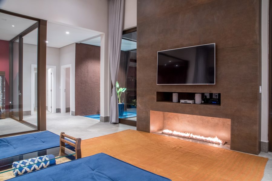 O modelo a gás também dispensa dutos e chaminés, porém exige cuidados de instalação e tubulação de gás que cumpra as normas de segurança e ventilação. Apesar da obra ou reforma indispensável para o funcionamento da lareira a gás, este modelo apresenta a vantagem de dispensar o reabastecimento frequente da lenha ou do álcool. Alguns modelos podem ser acionados até por controle remoto, garantindo a criação de um ambiente aconchegante de forma praticamente imediata. “Com todos os cuidados, é só abrir o registro”, afirma o arquiteto Bruno.