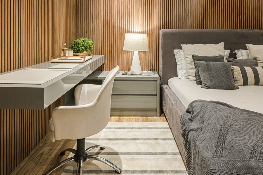 O quarto não é somente um espaço de recolhimento e descanso. Atualmente, o quarto se tornou um dos principais cômodos da casa, podendo ser também um escritório, espaço de estudos, penteadeira, leitura e relaxamento. Por isso, pensar em um espaço multiuso é um fator importante no décor.