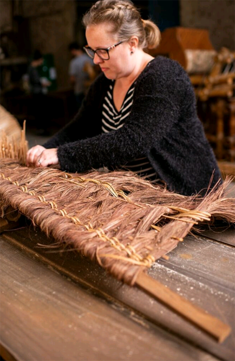 Comecei com uma cabeleira linda de piaçava, que virou uma peça de parede, com um belo pedaço de Imbuia como base e trama de junco filetado. Foi complexo, descobri que não tenho intimidade com esse tipo de trabalho! Passei a admirar ainda mais uma aluna minha que faz tapeçaria de parede depois dessa experiência.