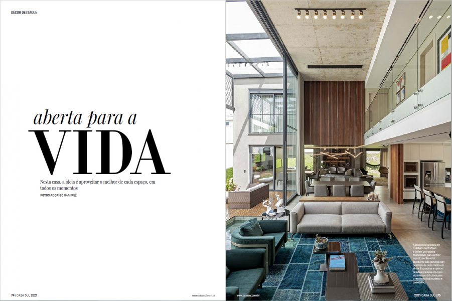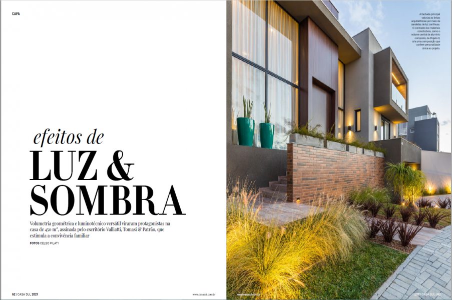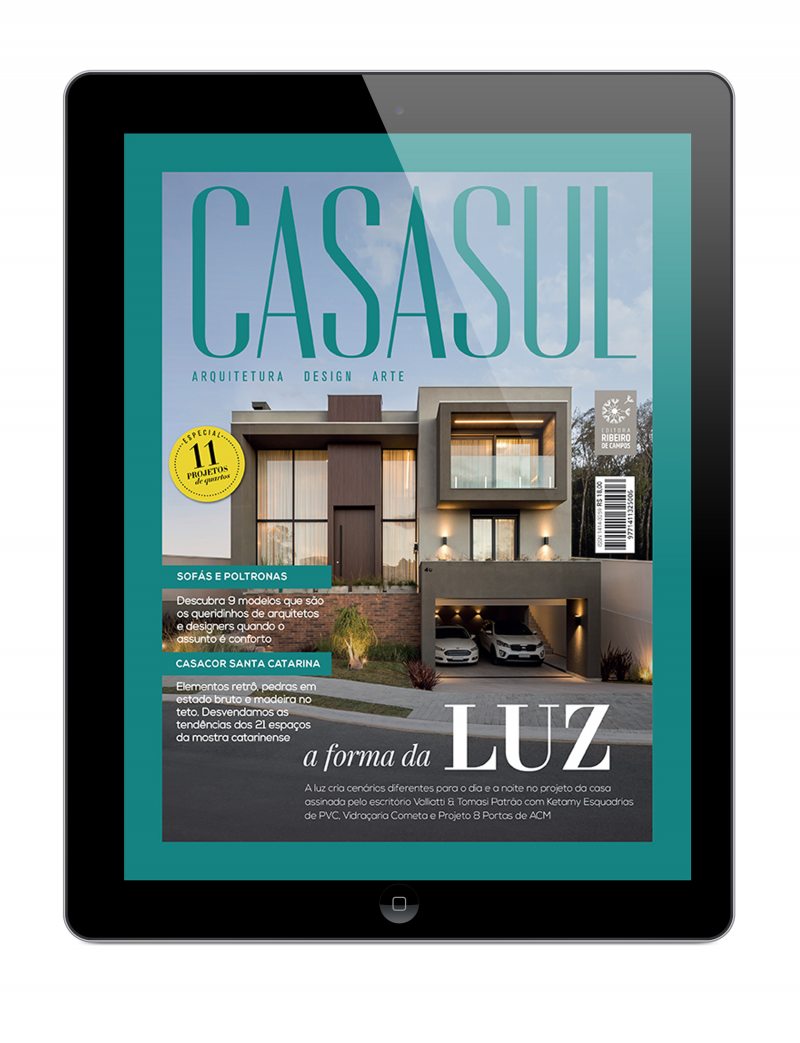 A edição 107 da Revista Casa Sul traz no projeto de capa uma casa onde aluz cria cenários diferentes para o dia e para a noite, assinada pelo escritório Valliatti Tomasi Patrão Arquitetura, com Ketamy Esquadriasde PVC, Vidraçaria Cometa e Projeto 8.