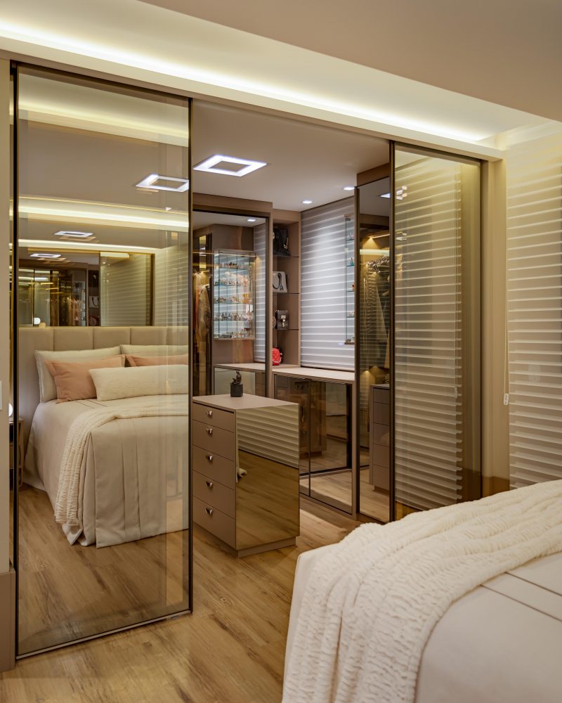 A leveza dita o tom desse apartamento de 100 m², lar de uma jovem advogada curitibana. Assinado pela arquiteta Ana Cristina Avila, o projeto conta com riqueza em detalhes sem deixar de lado o estilo clean e refinado, refletindo a personalidade da cliente com muita harmonia. O apartamento tem como um dos destaques a suíte principal, que teve outro quarto incorporado para dar espaço a um closet amplo e funcional. O ambiente conta com mobiliário personalizado que, somado ao uso de espelhos com filetes dourados e vidros, garante a sofisticação do local.