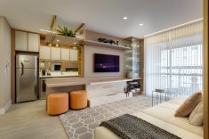 A tendência da serralheria no mobiliário dá um toque final ao estilo contemporâneo do projeto. O mobiliário solto, da M. Decor e Artefacto, combinados aos móveis sob medida projetados pela arquiteta e executados pela Todeschini Batel, garantem funcionalidade e qualidade. A iluminação com perfis de led também vem alinhada ao conceito do apartamento, que ganha mais conforto visual com sancas iluminadas e luminárias decorativas. Confira mais imagens em nossa galeria!