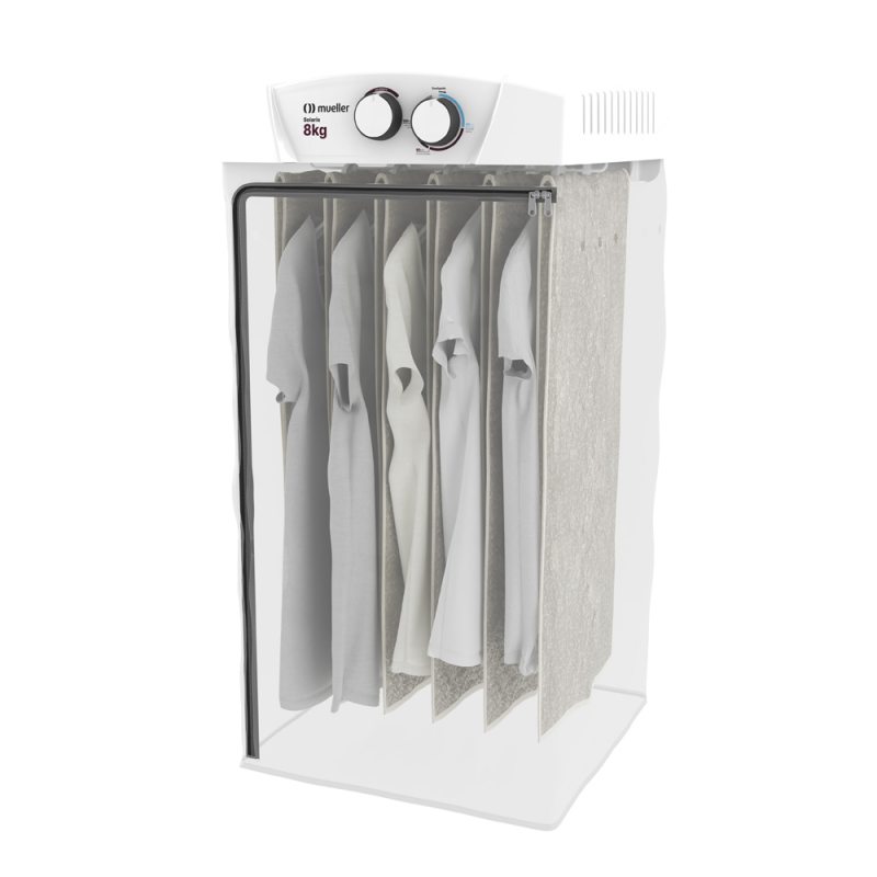 A Mueller também oferece a Secadora de Roupa Solaris 8 kg (foto acima). Aproveitando a verticalização da lavanderia, a secadora de parede permite a secagem das roupas esticadas, sem frisos e marcas indesejadas graças a seus seis varões e cinco cabides, o que pode até mesmo eliminar a passagem das roupas a ferro. Além disso, a secadora Solaris possui timer máximo de 120 minutos e oferece uma das maiores câmaras de secagem em PVC da categoria, o que facilita a distribuição do ar e contribui para uma maior eficiência. Para quem busca economia, o produto consome apenas 1 Kwh de energia e oferece um ótimo desempenho sem pesar no bolso. Somando a lista de benefícios, a Solaris também possui o sistema giro fácil, que permite dobrar a secadora até a parede quando não estiver em uso, ocupando menos espaço.