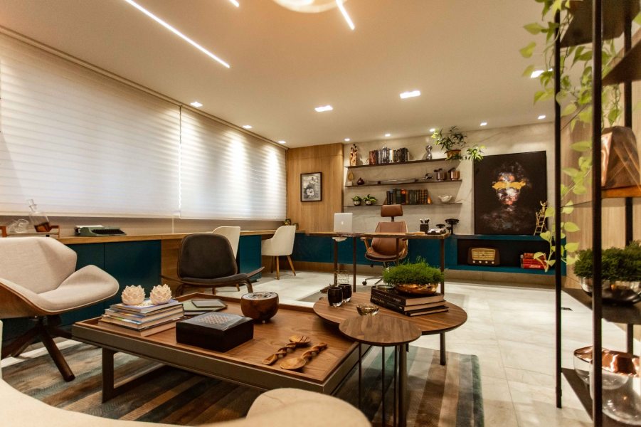 Dessa forma, o arquiteto conseguiu projetar neste ambiente, além de um espaço de trabalho, um lugar que conta a história da advogada em cada elemento e a mantém sempre próxima de sua família.