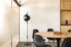 “Desde o início, nos deparamos com a incrível vista panorâmica da sala comercial para um dos maiores parques da cidade, o Parque Barigui. Sendo assim, buscamos valorizar essa qualidade do espaço através da organização das funções na planta livre”, ressaltam os profissionais.