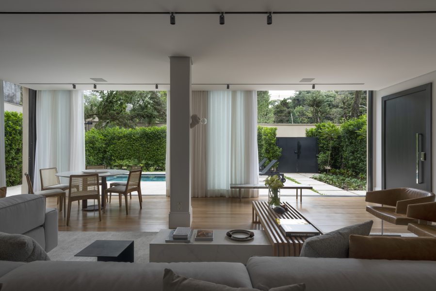 Localizada em um condomínio em São Paulo/SP, o décor de interiores idealizado por Patricia Martinez Arquitetura foi pensado para acolher a um casal com dois filhos. A casa possui, como ponto de partida, o uso funcional do espaço e uma paleta de cores discreta, dando destaque à luminosidade natural e ao jardim integrado.
