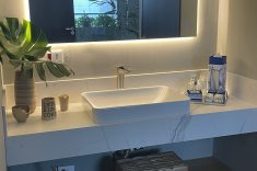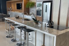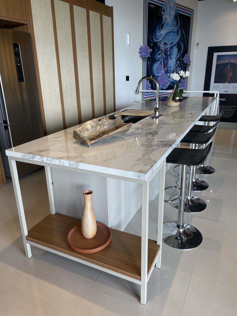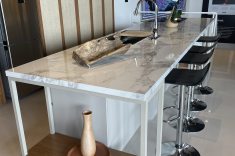 Acima: Bancada em Calacata Magnifico Polido, da Gramarcal.