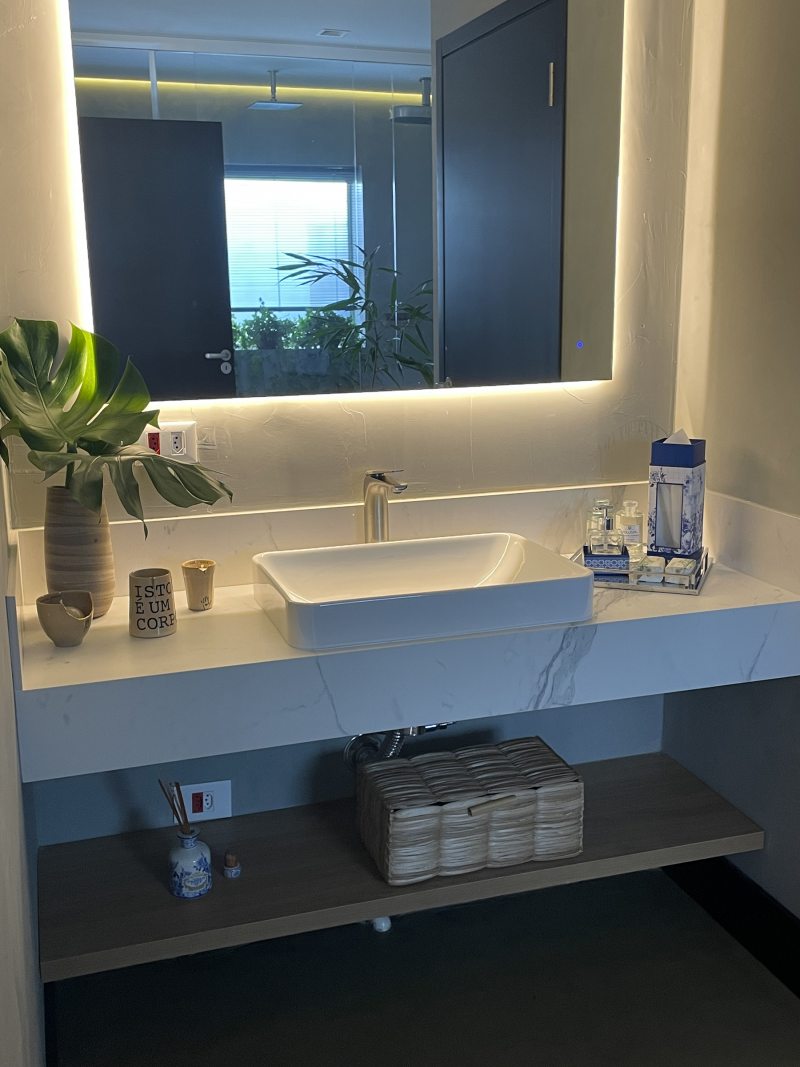 Com uma área de aproximadamente 500 m², o Studio vai além de uma simples loja, com produtos expostos funcionais que permitem que os visitantes testem desde bacias sanitárias até cubas, torneiras e banheiras no local. O showroom do Studio incorpora a beleza das pedras da linha Infinity da Gramarcal, destacando a elegância do Calacatta Magnifico polido e o refinamento do Statuario Príncipe acetinado.