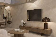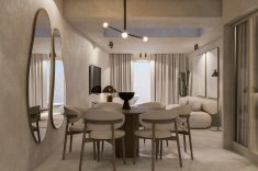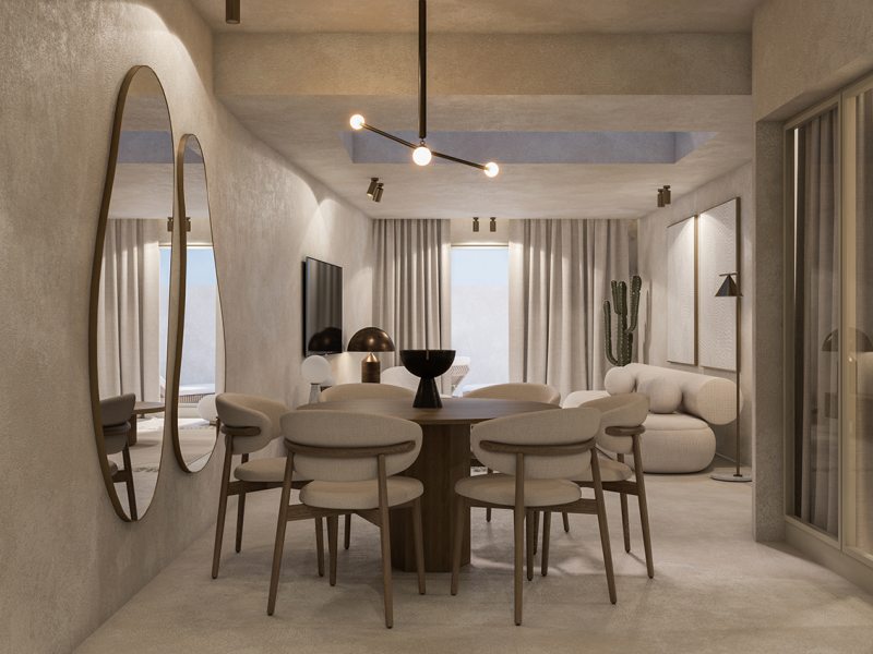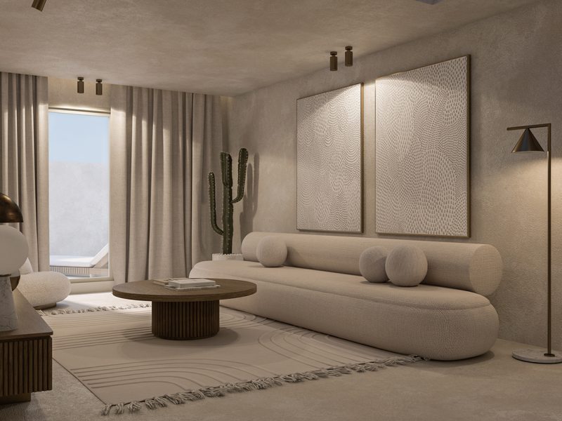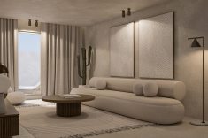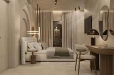 A estética atualizada inclui acessórios e móveis de marcas locais renomadas, como Apparatus Studio, Oluce e Gubi. Os tons neutros também permanecem para aumentar ainda mais a luz natural da propriedade, com tecidos de linho fino, além do mármore travertino nos banheiros e banheiras, que inclusive, foram pensados com muito cuidado para que a estadia seja ainda mais incrível.