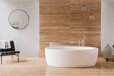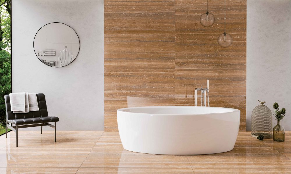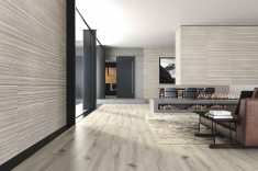 São 21 linhas apresentadas pela Roca Brasil Cerámica durante a feira. Dentre elas, a Piemonte é lançamento de 2019 e se inspirou no carvalho e seus veios, buscando um aspecto natural. Na mesma tônica, a Duo Concret reproduz com perfeição o aspecto do concreto. Os grandes formatos aparecem com força em coleções clássicas como Legno e Travertino. Em contraponto, os formatos quadrados vêm com roupagem diferenciada – como na linha Flake, com os Terrazzos Venezianos, disponível também em versão para piso molhado; ou a Evoke, urbana, inspirada na textura do cimento queimado.