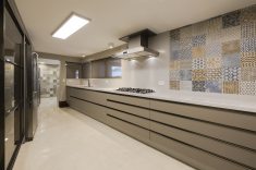 A arquiteta Caroline Bollmann conta os detalhes dessa história: "Seu Nino, como carinhosamente chamavam todos os moradores do local (um condomínio residencial familiar), projetou e executou a mais de 30 anos, um condomínio para a família morar, numa região central de Curitiba. Visionário como era, na época, pensou num espaço coberto com piscina e churrasqueira, e me contaram os familiares, que foi mesmo muito usado até ele falecer em meados de 2005, aos 96 anos. Passaram-se 14 anos, os filhos de seu Nino viraram avós, os netos casaram, vieram os bisnetos, as famílias aumentaram e com elas, a vontade de terem um espaço para celebrar os aniversários, as datas festivas. Porém um receio grande de como reformar sem perder a essência do local... Por algum momento, achei que isso seria impossível, afinal o novo projeto deveria fechar a antiga piscina (pouco usada e de muitos gastos com manutenção) e incluir um espaço para receber confortavelmente 80 pessoas. Um grande desafio que ficou claro pra mim, quando entendi que a arquitetura do espaço já me dizia o que o seu Nino faria se ainda estivesse aqui... E foi com esse pensamento, que adotei a ideia de restaurar o que o espaço tinha de melhor, e valorizar com novos usos e novos materiais porém sem perder a essência do ambiente, que sempre foi muito acolhedor."