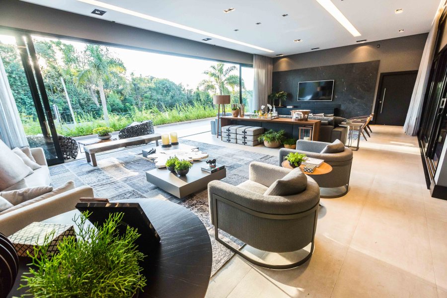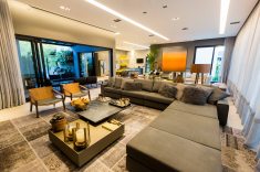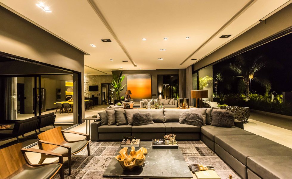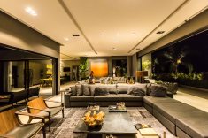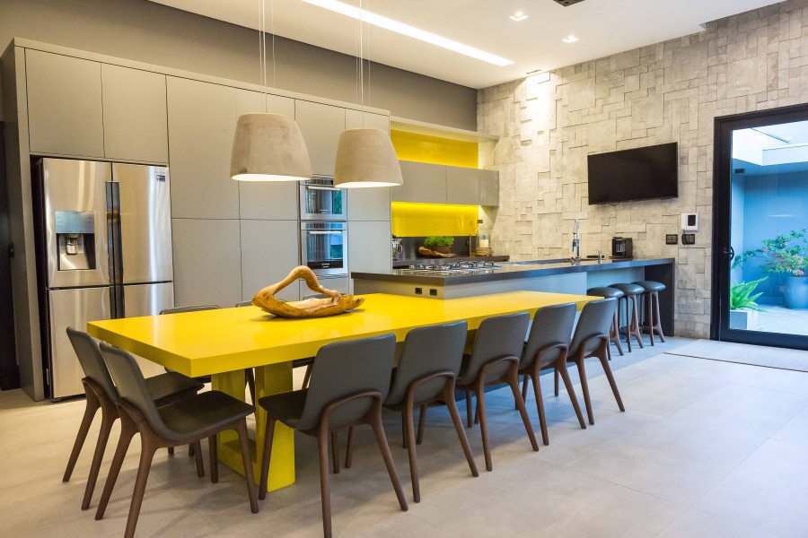 Para receber bem os amigos e familiares, os espaços da área social são integrados e funcionais: “Devido às dimensões alongadas do terreno, busquei uma proposta na qual todos os cômodos mantivessem uma comunicação rápida e fluída entre todos os ambientes, deixando a área íntima um pouco mais reservada”, comenta Viviane.