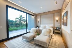 A antiga residência situada no terreno foi incorporada ao novo projeto – que demorou aproximadamente dois anos para ser executado - e recebeu elementos arquitetônicos e decorativos de alto padrão. As cortinas, papéis de parede, tecidos e objetos de decoração foram escolhidos a dedo na M. Decor: “Escolhi a M. Decor por ser uma loja com produtos únicos, impecáveis, além do atendimento personalizado e comprometimento que nos dão segurança junto ao cliente”, ressalta a arquiteta. Para as grandes aberturas, cortinas em linho com telas solares, que protegem o espaço da incidência de sol sem deixá-los escuros.