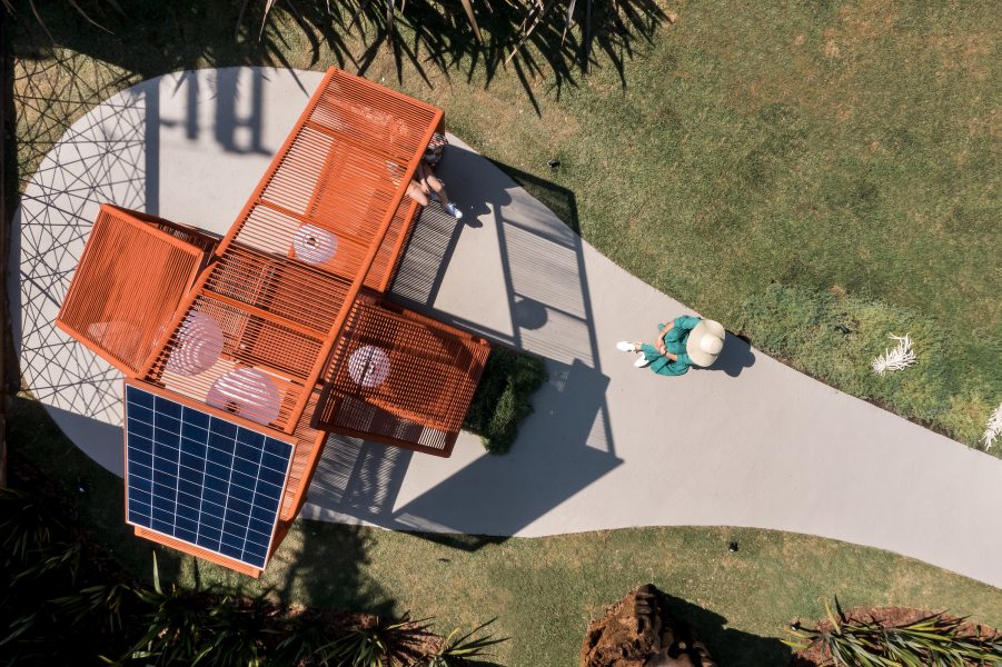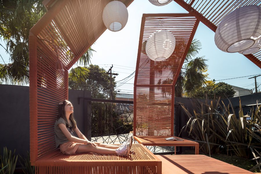 Onde: Curitiba • 23 de Setembro - 2021 | Fotos Eduardo MacariosRoberta Jiraschek e Daniela Niederauer apresentam a House, mobiliário que conecta o usuário ao ambiente externo