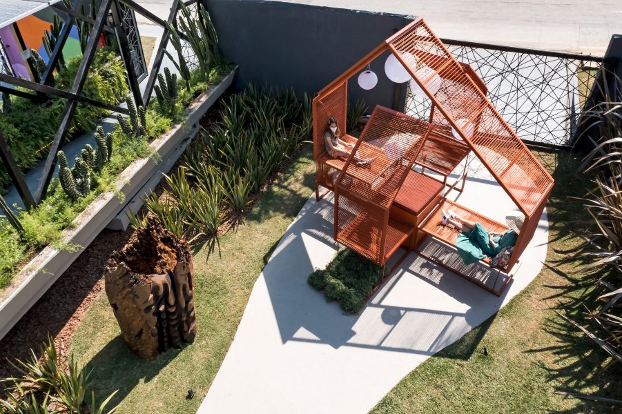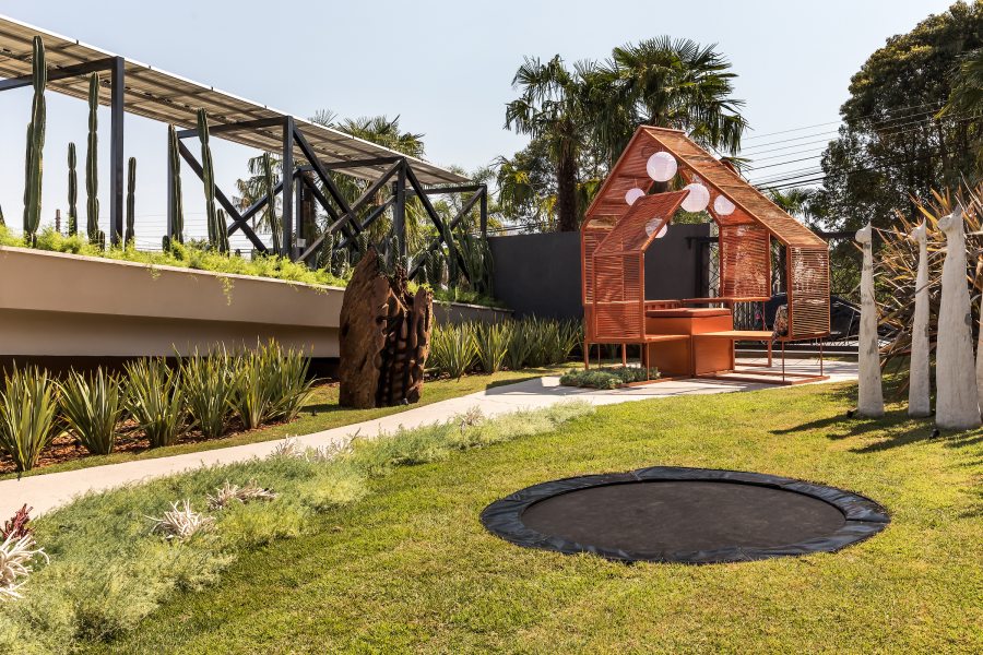 O complexo de 400 m² oferece interação com a natureza, cultura, espaços multifuncionais e área infantil. A proposta é descontruir a ideia de que o quintal serve apenas para diversão e brincadeiras, principalmente nestes tempos de ressignificação, em que as áreas externas passaram a ser ainda mais valorizadas nas residências.
