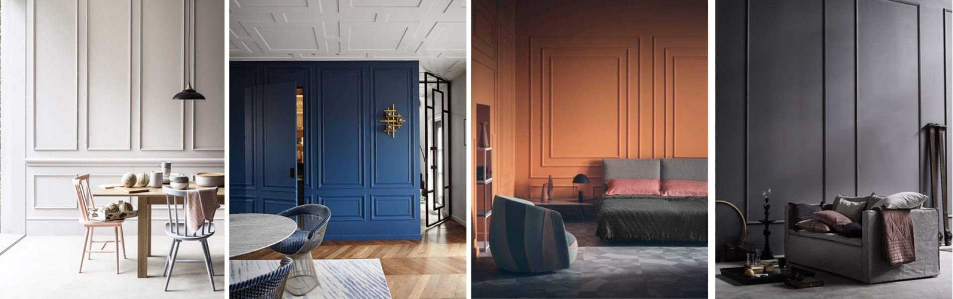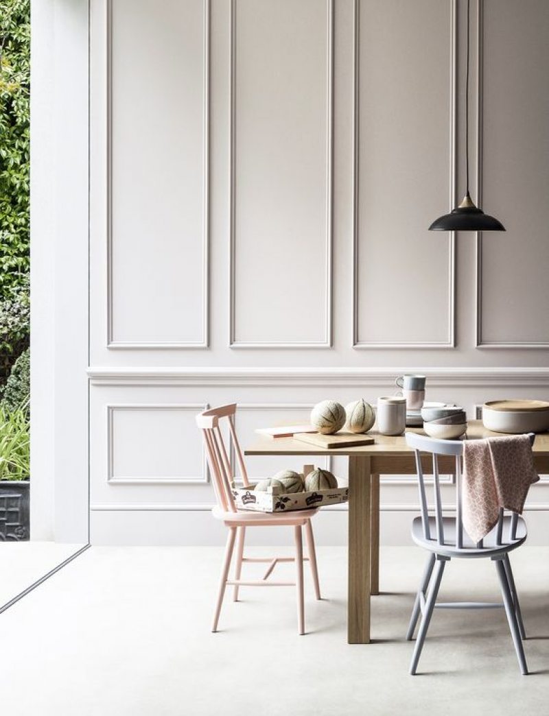 Já faz um tempo que temos utilizado bastante as famosas "moldurinhas de gesso" para dar uma graça às paredes. Apesar de terem sido consideradas meio bregas por um tempo, elas trazem um ar renovado aos ambientes, podendo assumir uma personalidade mais clássica ou até mesmo BEM moderna, conforme a decoração do ambiente como um todo. Uma forma de modernizar as boiseries é utilizar a mesma cor das paredes para pintá-las.
