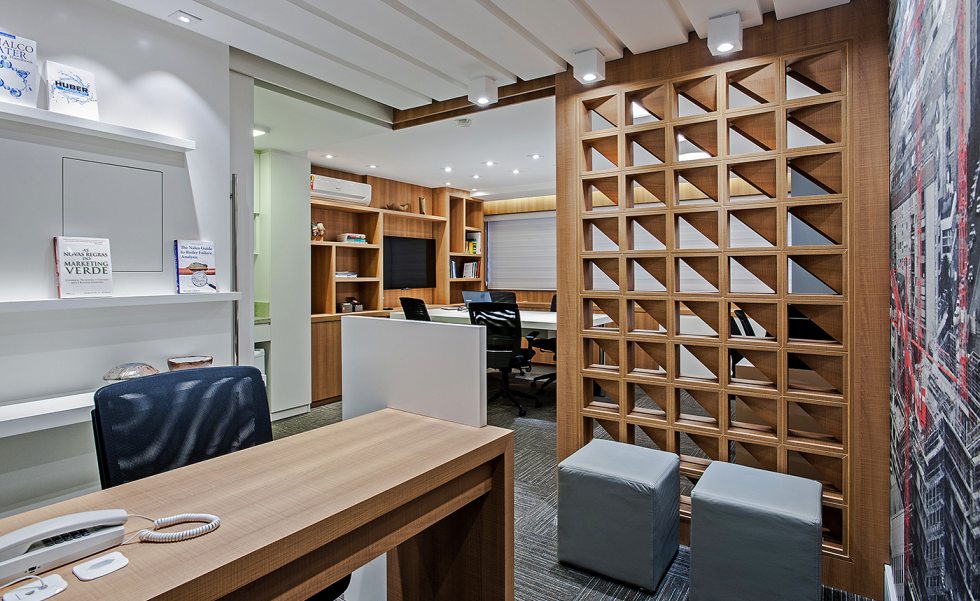 Onde: Curitiba • 02 de Maio - 2018 |Uma sala comercial de apenas 30m² decorada pela designer Luciana Gibaile com muita criatividade, usou plotagem e divisória para separar os espaços e deixá-los com um toque super original.
