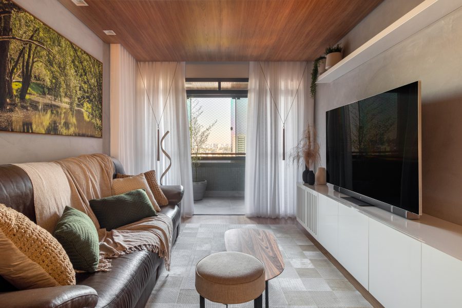 Na sala de TV, por fim, o mix de tecidos e texturas dos tapetes, cortinas e estofados da Casa Adentro arremata o décor e “abraça” os frequentadores em uma atmosfera acolhedora. Se uma “morada dos sonhos” inclui conforto, sofisticação e beleza de sobra, esta, definitivamente, atende a todos os requisitos.