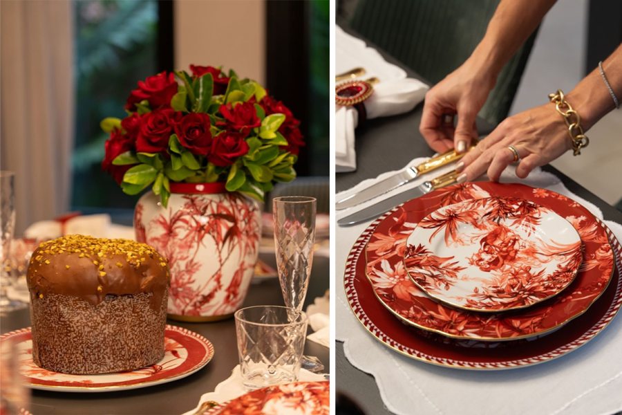Jogos americanos, guardanapos, cachepots, pratos, sousplats e capas de almofadas integram a linha de Natal assinada por Rebeca Duarte Home.