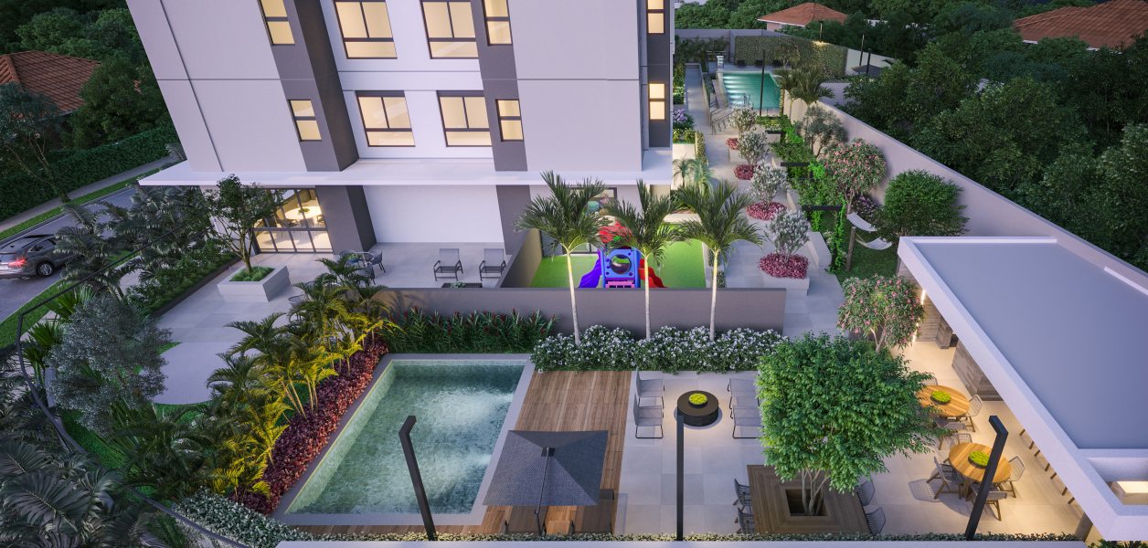 Acima: Jardins pet friendly do empreendimento Mayfair, do Grupo A.Yoshii