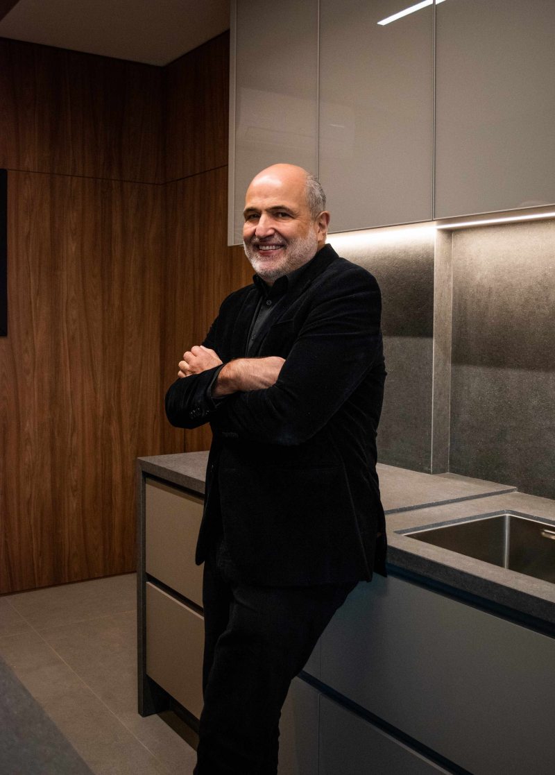 Localizado na Av. Munhoz da Rocha, 1283, no bairro Cabral, o apartamento decorado tem 190 m² e layout integrado. “Utilizamos o espaço original e foram muitas as opções para personalizá-lo; escolhemos a ideia mais assertiva para demonstrar todo o potencial do imóvel”, afirma o arquiteto Glei Tomazi, que assina o projeto de interiores juntamente com os profissionais Ana Paula Sakagami Peterson Silva e Rita Teodorovicz, além do próprio Jayme Bernardo (foto abaixo).