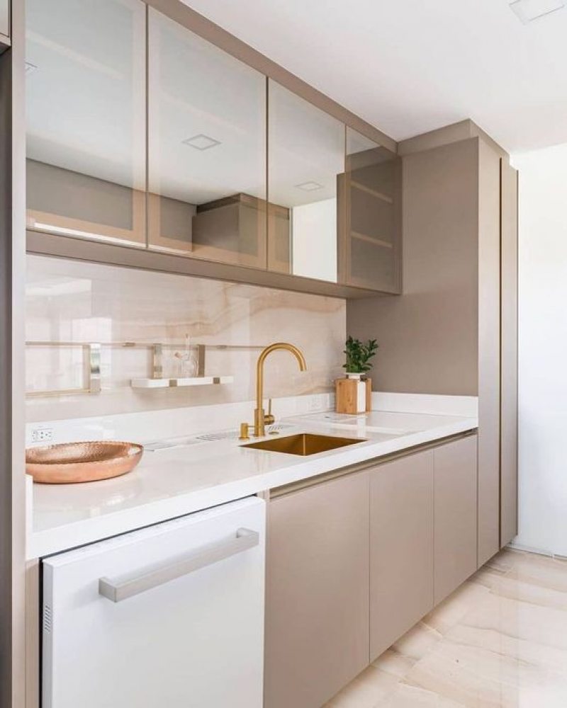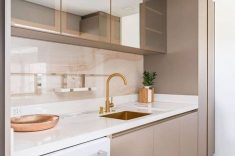 Os itens na cor prata, muito usados por quem ama decoração contemporânea, abriram espaço para artigos de decoração em tons de bronze e dourado. Buscando cozinhas mais delicadas e aconchegantes, os itens nesses tons podem ser usados em detalhes, como tampas de potes, talheres, bandejas, torneiras e outros.