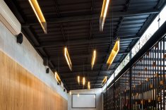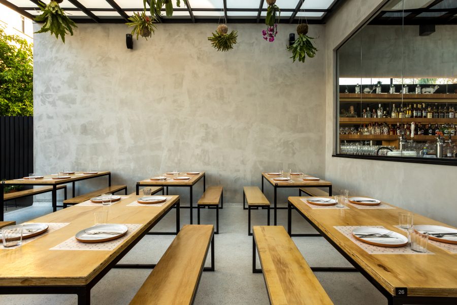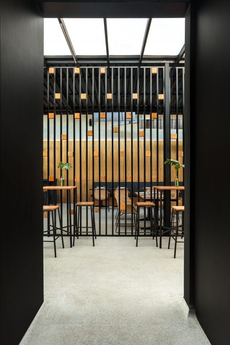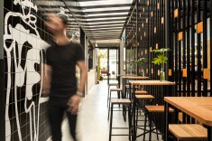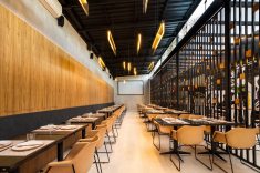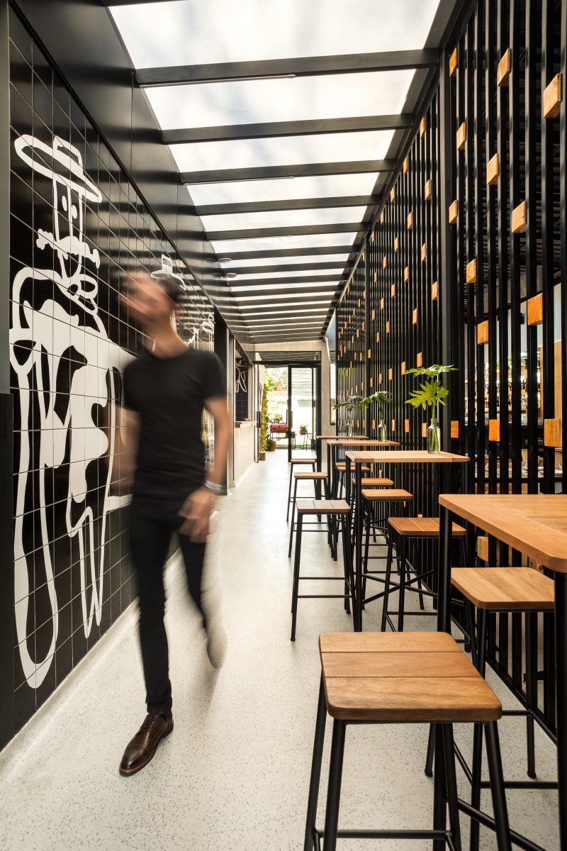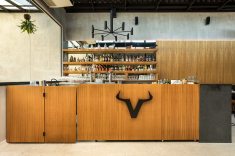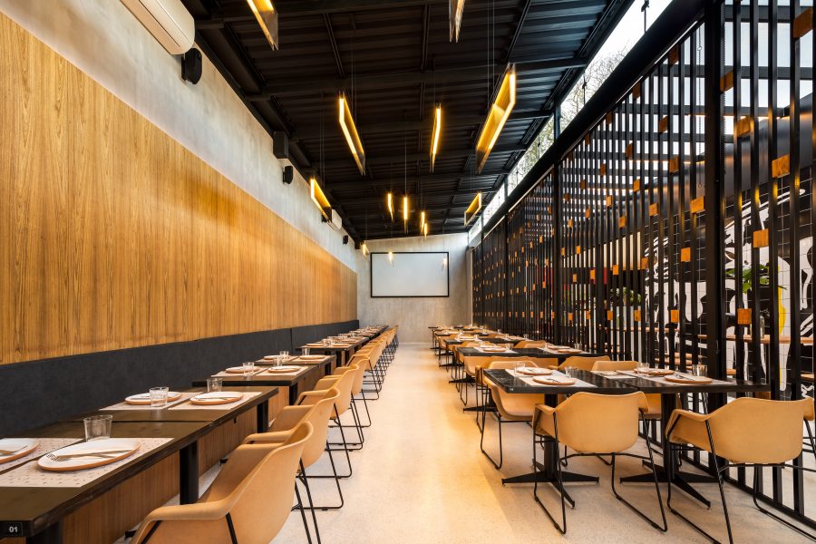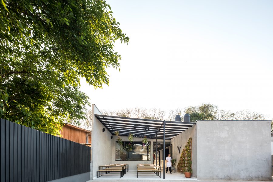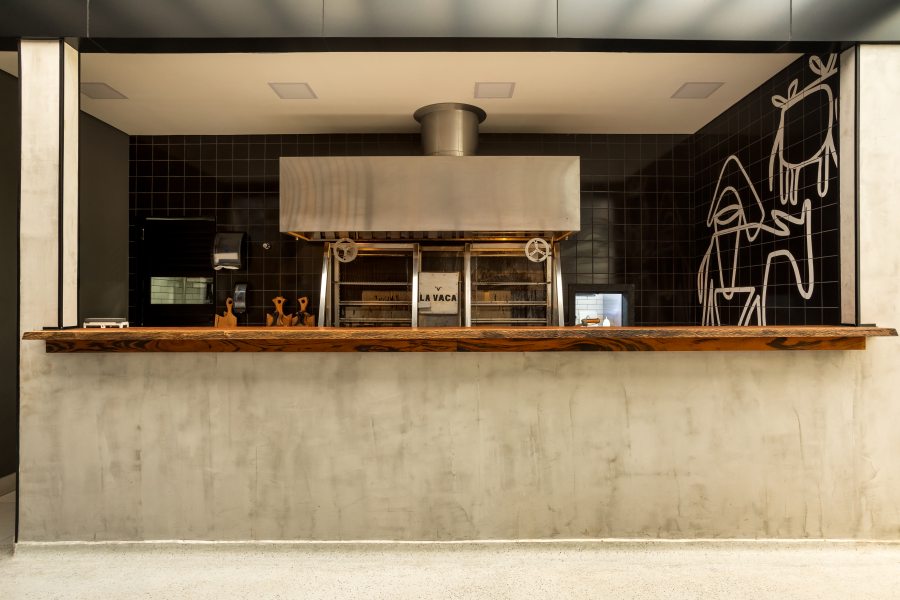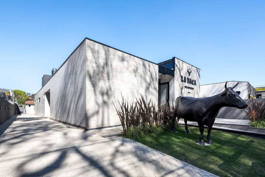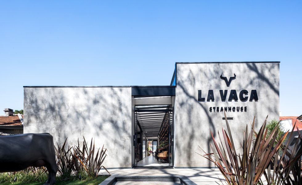 O empreendimento, composto por dois blocos retangulares ligados por um passeio arquitetônico, foi construído em steelframe e levou apenas quatro meses para ficar pronto. “Uma das principais solicitações dos clientes era de que o La Vaca precisava ter duas funções distintas: restaurante e açougue boutique” explica o arquiteto Giuliano Marchiorato, da Giuliano Marchiorato Arquitetos. “Foi a partir dessa premissa que a equipe de projeto se inspirou em dividir o espaço em dois grandes blocos longitudinais, conectados por um corredor iluminado que permite que o transeunte observe os dois setores durante o percurso.”