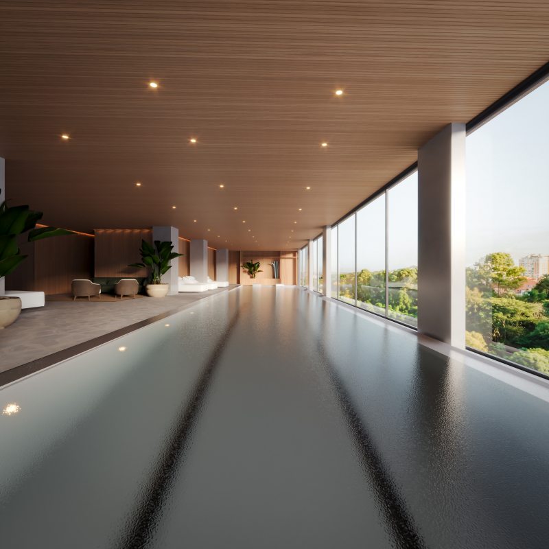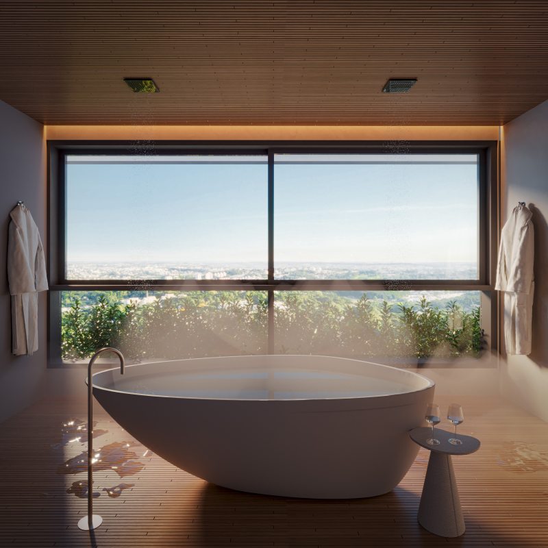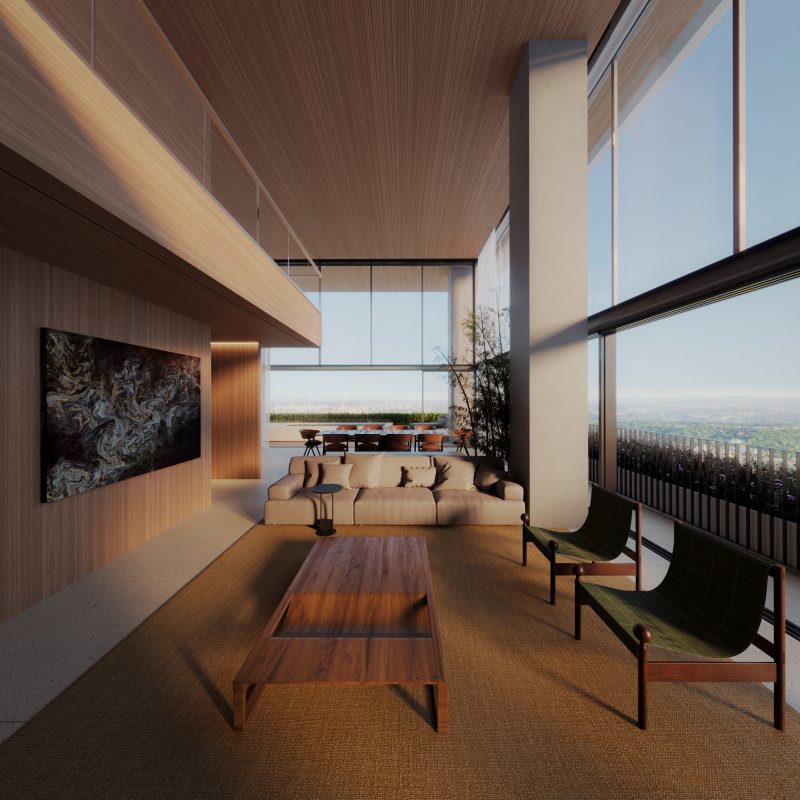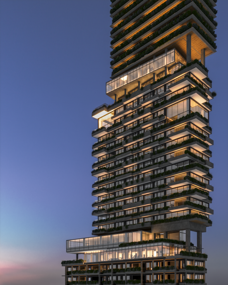 A construção se destaca pela atenção ao bem-estar, colocando o morador e a natureza no centro da sua arquitetura. Com mais de 160 metros de altura e 44 andares, suas unidades possuem varandas cobertas de verde que materializam uma ‘floresta urbana’ em meio à cidade.