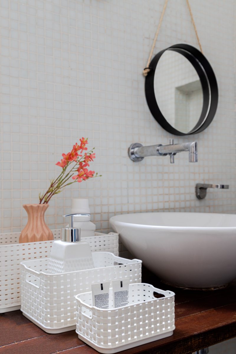 Uma maneira interessante de decorar com plantas é eleger aquele cantinho esquecido como uma pequena selva. Diferentes formatos de vasos grandes, apoiados em pratos no chão, podem ser combinados a acessórios como suportes de ferro, criando um mix super interessante. Os vasos pequenos, que cabem na palma da mão, podem ser inseridos como “cereja do bolo” no décor, posicionados em cima de livros ou nas estantes que precisem de um toque divertido para quebrar a seriedade. Outra opção é combinar vários vasinhos do mesmo formato porem em cores diferentes. Vale distribuir as peças em cima de livros, cadeiras, armários e prateleiras basta soltar a criatividade.