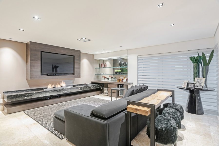 As lareiras a álcool também são chamadas "bio-lareiras" porque dispensam a queima de madeira ou gás. Segundo a empresa Art Fire, especializada no ramo, as biolareiras utilizam álcool ou etanol como combustível e oferecem grande eficiência de aquecimento, sem perda de calor. As lareiras a álcool não exigem instalação, chaminés, dutos ou ramais de alimentação e são completamente autônomas – alguns modelos são portáteis e se adaptam a qualquer ambiente. No projeto abaixo a lareira foi integrada ao home num volume decorativo para acomodar a TV. A volumetria da lareira integra todo o home e living da sala principal, que ficou muito mais aconchegante.