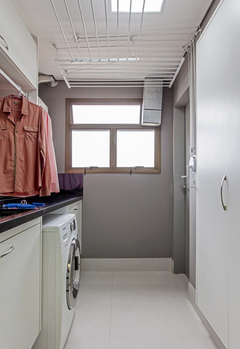 Bons projetos de lavanderia prezam pelo aproveitamento da luz e da ventilação natural. "Se você tem uma boa janela nessa área, considere-se um sortudo. Assim, não deixo nada que possa obstruir a entrada desses recursos tão valiosos", celebra a profissional. A secadora é uma grande aliada, mas nada melhor que essa combinação para roupas cheirosas, que secam rapidamente e que economizam energia nesse processo.