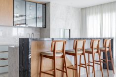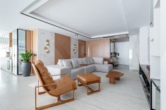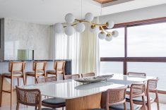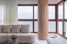 Uma tela em branco voltada para o mar, onde a reconfiguração da planta, a integração dos ambientes e o uso de materiais como madeira, mármore e porcelanatos de grande formato estão entre os pontos centrais. Assim é o projeto deste apartamento em Balneário Piçarras, no litoral norte de Santa Catarina, assinado pelo arquiteto Paulo Spessatto.
