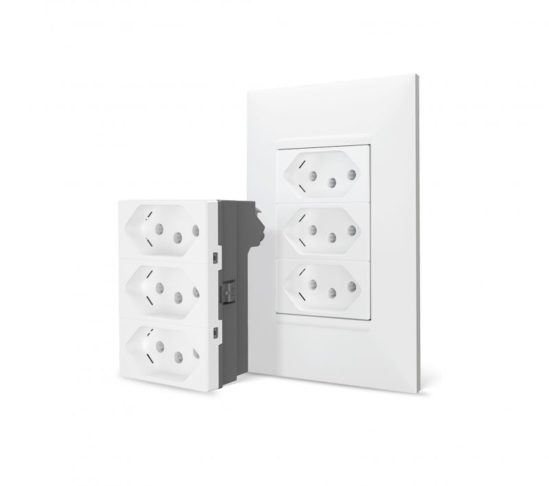 Velocidade: a nova linha oferece ainda soluções rápidas para reformas e construções, as tomadas tríplex possuem 3 tomadas de energia (2P + T – 10A) pré-cabeadas em seu interior, sendo necessária somente uma conexão de fios e cabos.