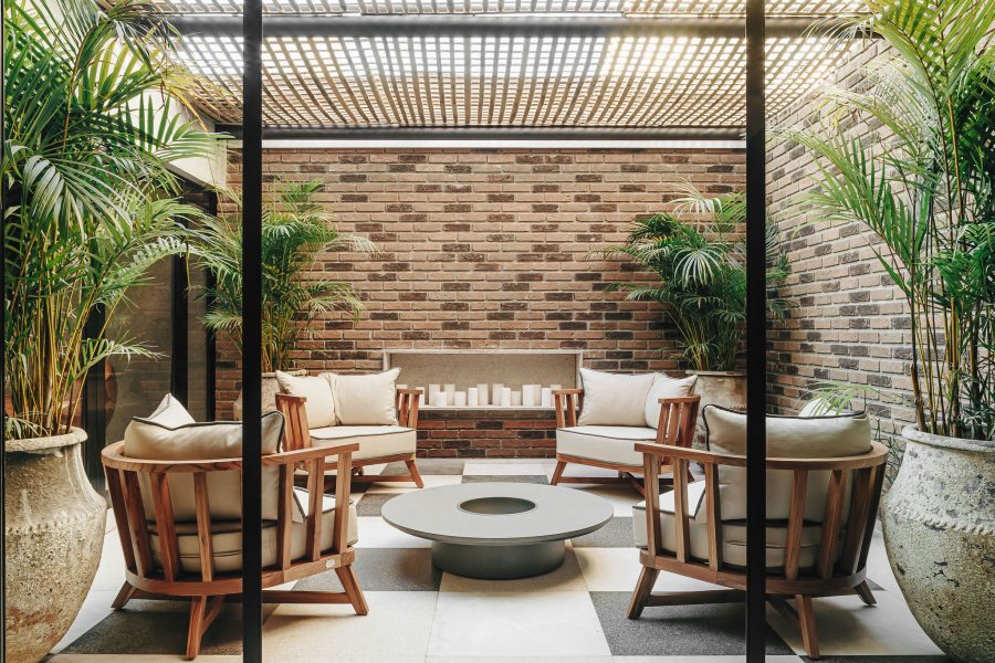 Destaque do loft, a varanda a céu aberto é um convite aos bons momentos! Um verdadeiro paraíso para os amantes de espaços verdes, o ambiente é responsável por inundar o local de luz natural. Além disso, a parede de tijolos aparentes, o mais elementar dos materiais da construção, confere atemporalidade e mantém uma relação franca entre os visitantes e o espaço construído, diversificando a paleta dos materiais.
