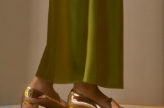O salto côncavo do sapato Elyette desafia convenções com sua forma escultural. Já no modelo Rotonda, o salto é recuado para criar uma curvatura ainda mais atraente. A tira dourada superior acompanha o contorno do tornozelo, valorizando as curvas naturais do pés.