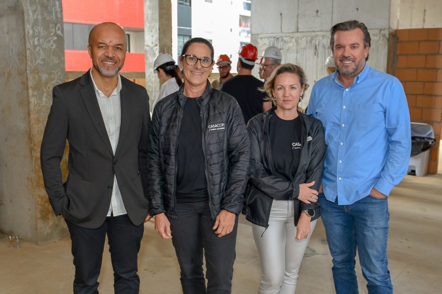 Os preparativos para a CASACOR Santa Catarina 2026, em Balneário Camboriú, já movimentam o mercado. Profissionais de arquitetura, interiores e paisagismo participaram de um Open House no Pericó Residence, sede que receberá a mostra no próximo ano — quando a CASACOR SC celebra 30 anos de presença no estado. Na foto, os Diretores da Pioneira Empreendimentos, Claudio Marcio de Souza à esq. e Miro Teixeira à dir. com a diretora Francis Bernardo e a executiva de comercial da CASACOR SC, Elen Gramkow. Foto Carlos Alves.