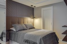 A designer de interiores Hellen Giacomitti, em parceria com a Grey House Iluminação, distribuiu spots de lâmpadas, fitas e placas, todos em LED. Para a profissional, o projeto luminotécnico representa 99% do trabalho, e por isso todos os lúmens do imóvel são calculados.