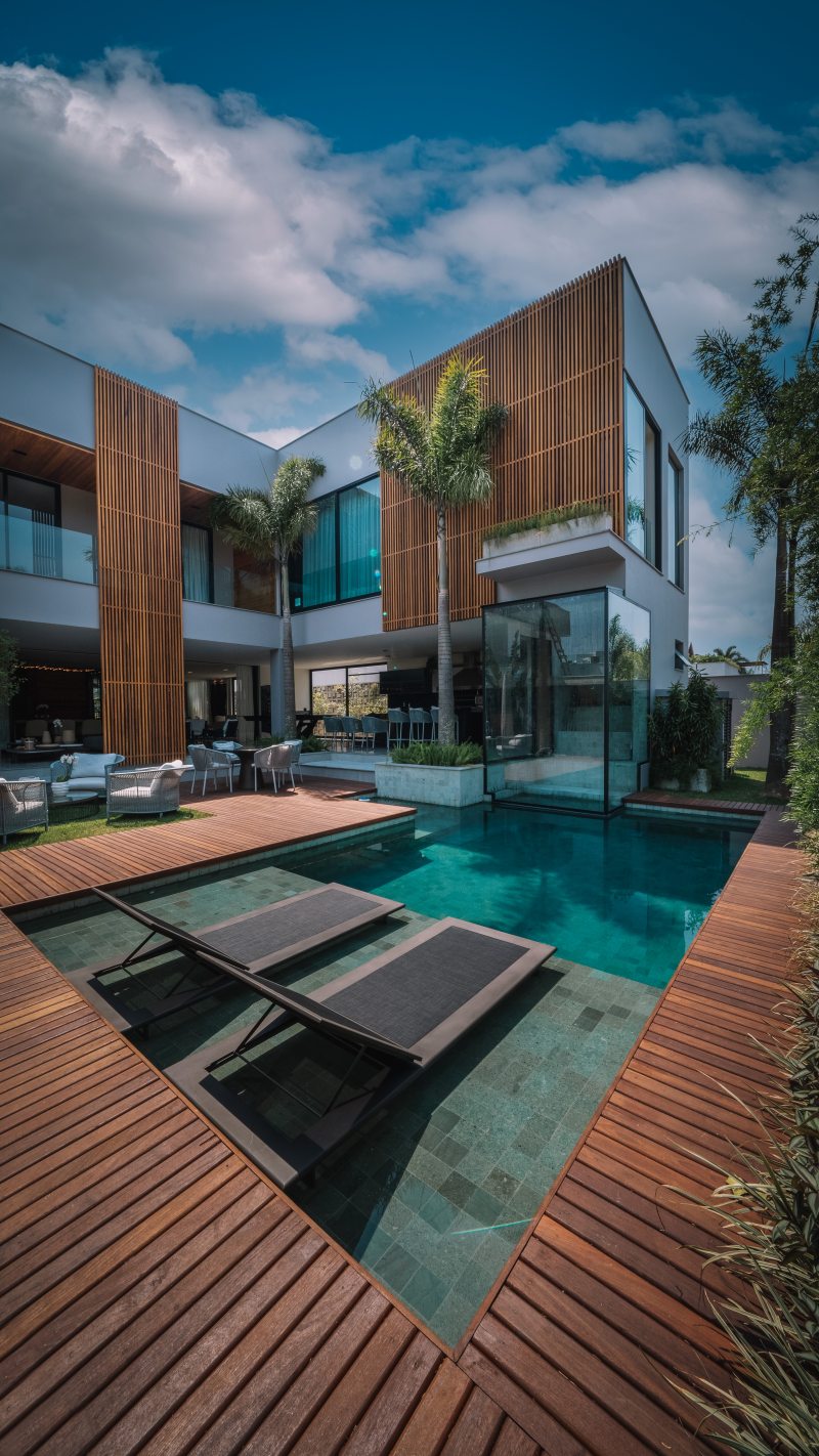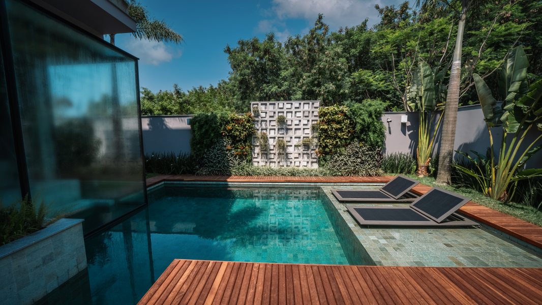Como estamos falando em uma residência dos sonhos, porém, as surpresas não param por aqui. Integrado à área social, o jardim com piscina, deck molhado e sauna permite máxima interação com o espaço gourmet com churrasqueira, salão de festas e salão de jogos.
