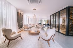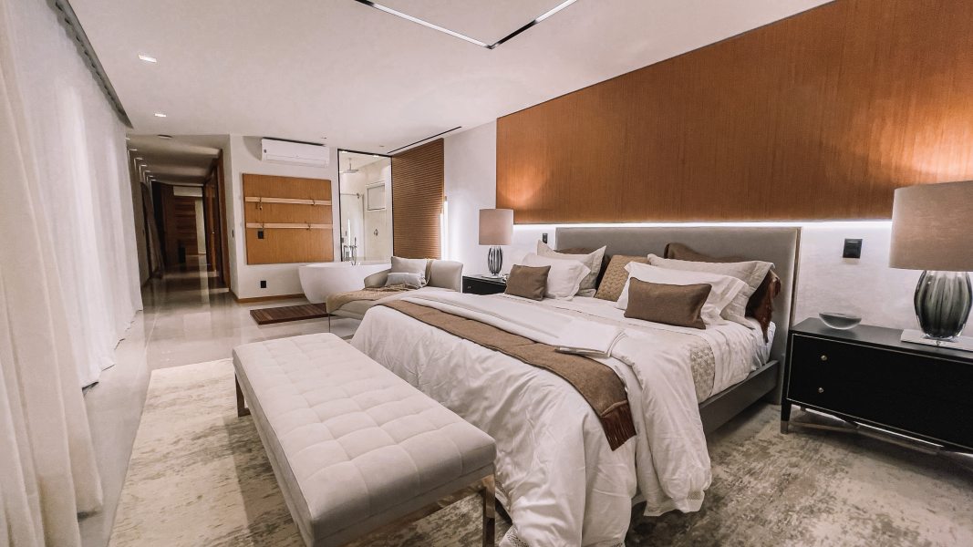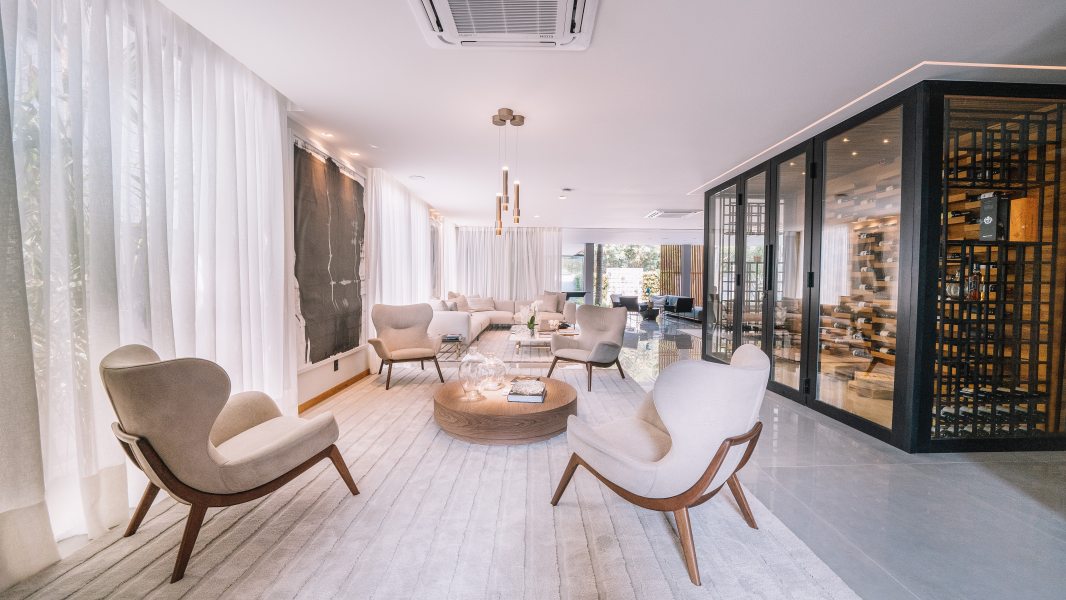 Localizado no Alphaville Barra da Tijuca, no Rio de Janeiro, a residência conta com 768,64m² distribuídos ao longo de quatro pavimentos decorados com o que há melhor em arquitetura e design. O projeto, assinado pela Arq Design Brassaroto, utilizou materiais e acabamentos de altíssimo padrão para garantir um resultado luxuoso em cada detalhe.