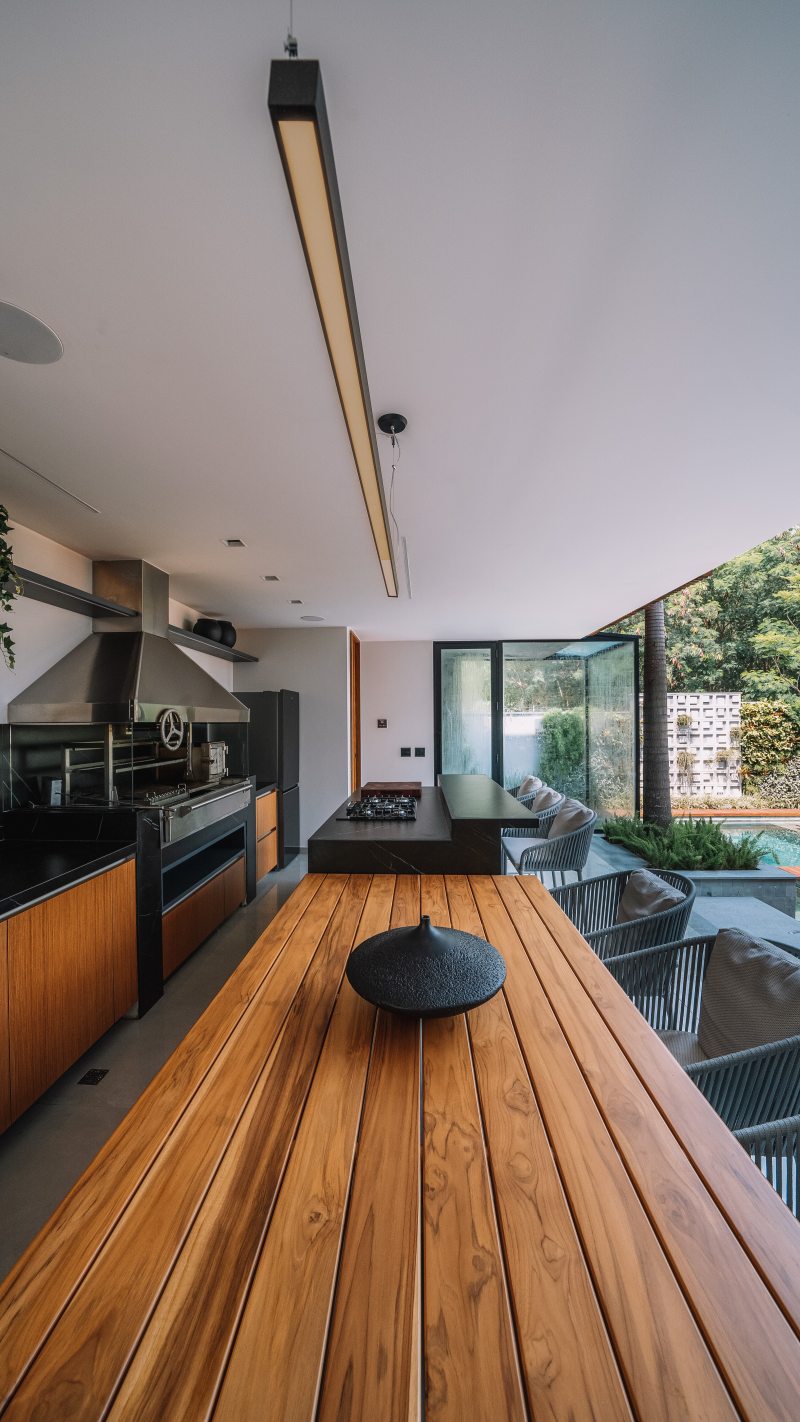 Além do wine bar, sala de estar e sala de refeições com espaço para até dez convidados, moradores terão uma cozinha digna de chef à sua disposição.