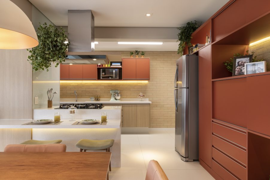 Acima: ambientes sujeitos à ação de gordura e líquidos devem passar por impermeabilização para evitar danos ao revestimento. Projeto de Marina Carvalho Arquitetura / Foto: Evelyn Muller