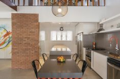 Acima: Tijolos com junta seca compõem o pilar que dá um toque natural à casa reformada pelo escritório PB ARQUITETURA | Foto: Photons Fotografia