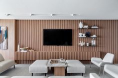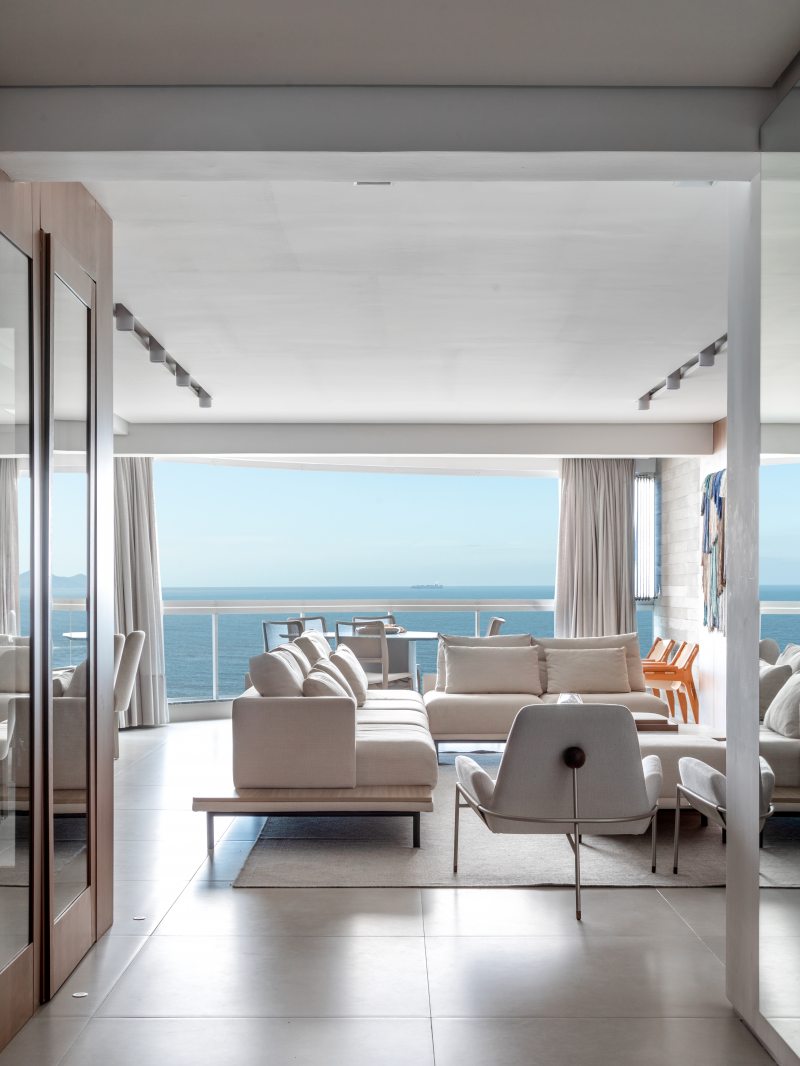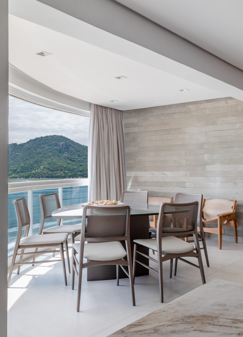Com 255m² de área total o apartamento de frente para o mar de Camboriú, em Santa Catarina, passou por extensas reformas para se adequar ao estilo de vida da família de moradores que adora confraternizar. O projeto assinado pelas irmãs gêmeas Isabela e Gabriela Farhat Corat – arquiteta e engenheira civil, respectivamente – utilizou mobiliário de grande porte para compor ambientes de convivência agradáveis com vista privilegiada para o litoral.