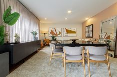 Ambiente moderno, as arquitetas Fernanda Fontella e Kamila Kowalczuck, da Baú Arquitetura, otimizam o espaço junto ao conceito urbano. Como os novos empreendimentos apresentam imóveis de pequena metragem, as profissionais mostram como é possível otimizar o espaço transformando uma sala em living e sala de jantar. A mistura de elementos traz a atmosfera urbana ao ambiente, ousando com o metal, tons neutros e pontos de cor com o laranja.