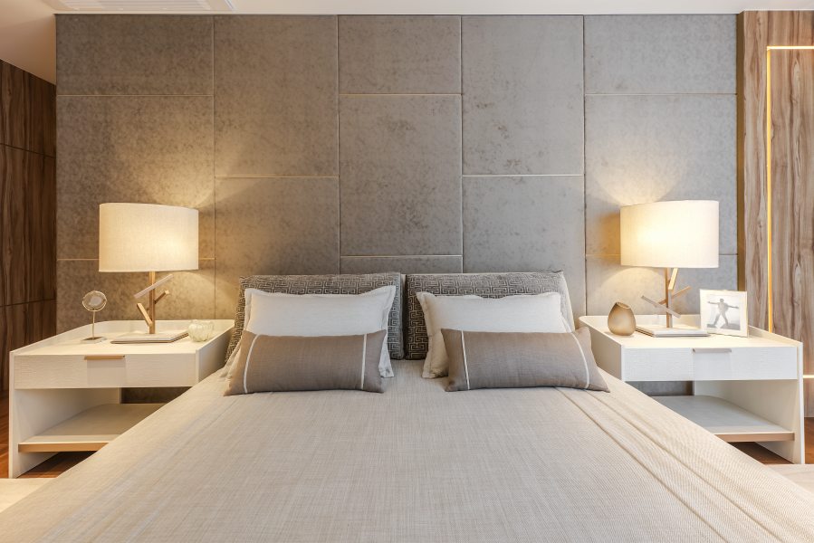 Acima: A iluminação indireta deixou a suíte master mais agradável e equilibrou a neutralidade da paleta de cores em tons de cinza. Projeto de Leal Ribas Arquitetura - Foto: Marcelo Stammer (projeto publicado na edição 94 da Revista Casa Sul)